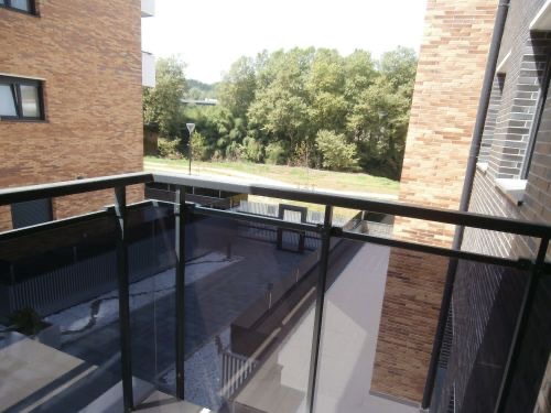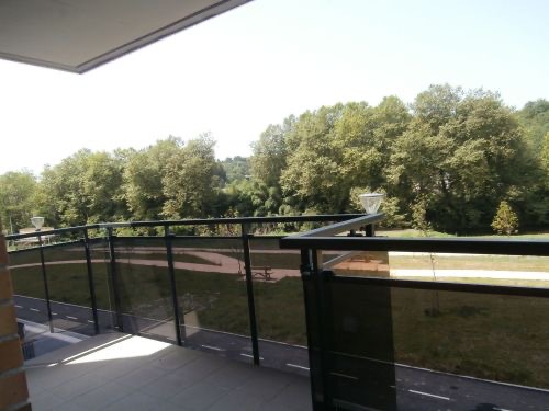 El salón y la cocina son independientes pero conectados por una puerta corredera, y ambos tienen salida a una preciosa terraza con vistas despejadas hacia el parque fluvial y el río, lo cual resulta una delicia.