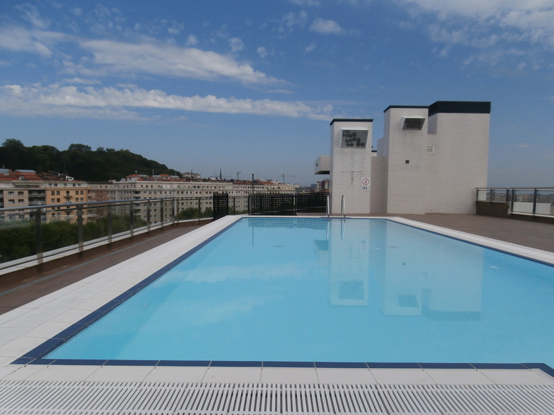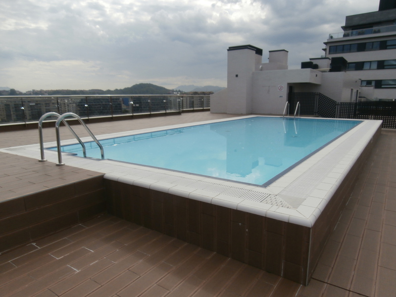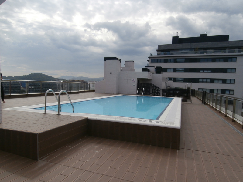 vivienda de nueva construcción, 2015, con zonas verdes y dos piscinas comunitarias en la azotea de la construcción, desde donde se puede disfrutar de impresionantes vistas despejadas de la ciudad y