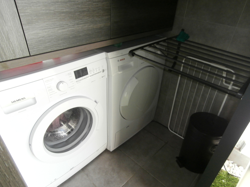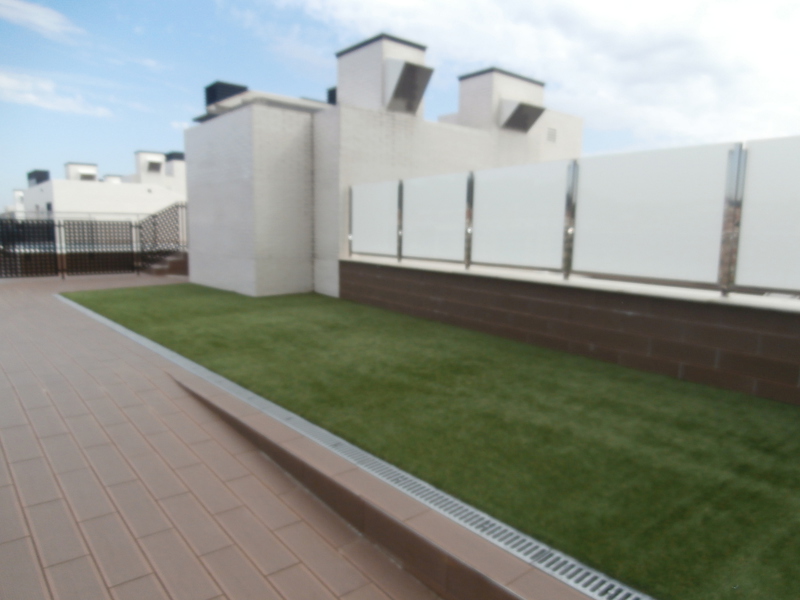 disfrutar del sol prácticamente todo el día, y donde se puede colocar una mesa y unas sillas. En la terraza, hay una zona de tendedero donde se ubica la lavadora y secadora, el tenderete, y ademas