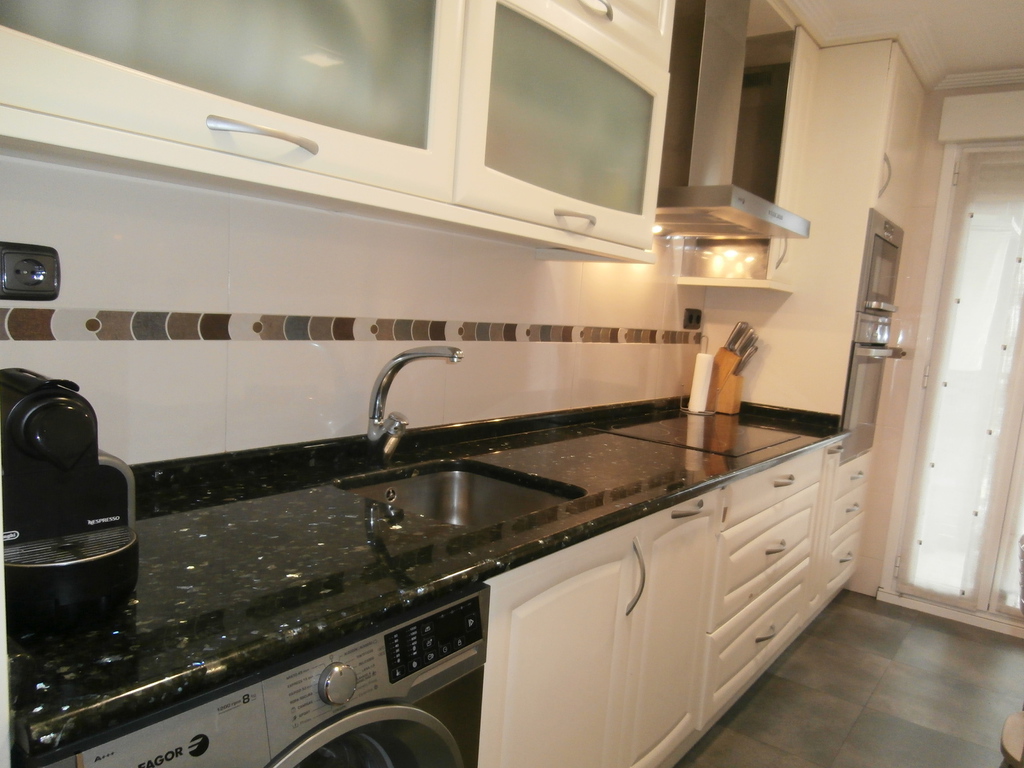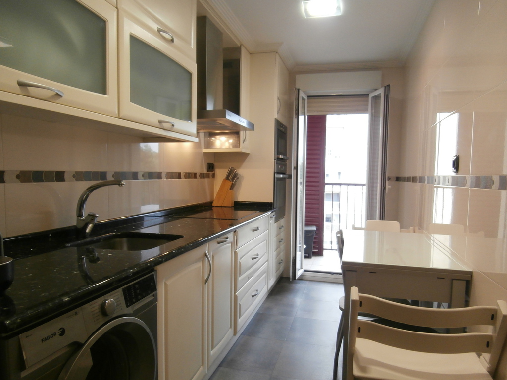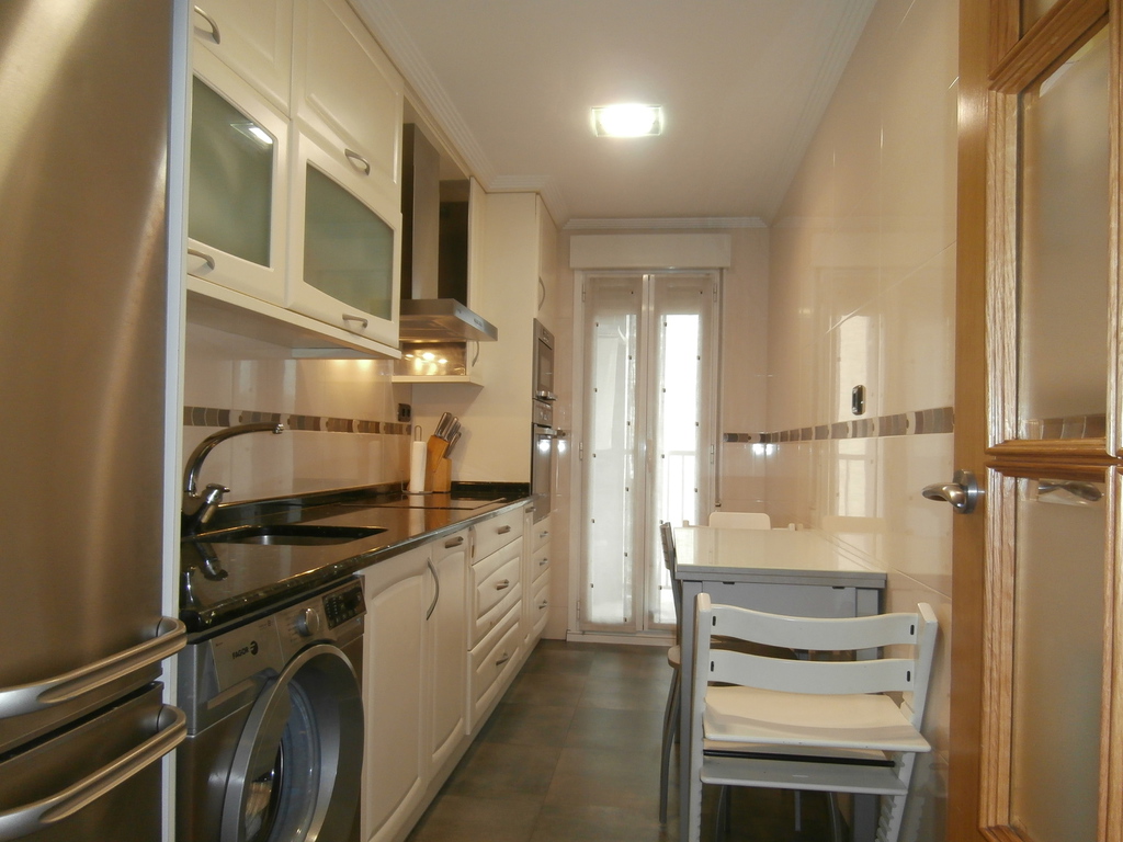 Espaciosa vivienda sita en Paseo de Larratxo, San Sebastián. Son 82 m2 útiles distribuidos en gran vestíbulo, amplio salón exterior con salida a balcón, cocina equipada con lavavajillas, lavadora, horno, microondas y frigorífico, tres dormitorios, siendo uno de ellos suite con aseo incorporado, y un segundo baño completo con bañera.