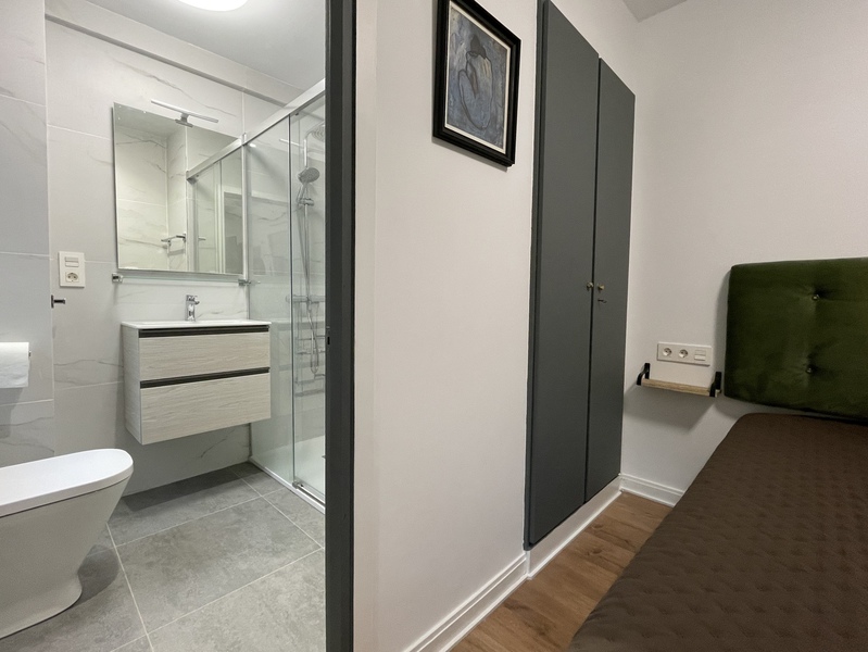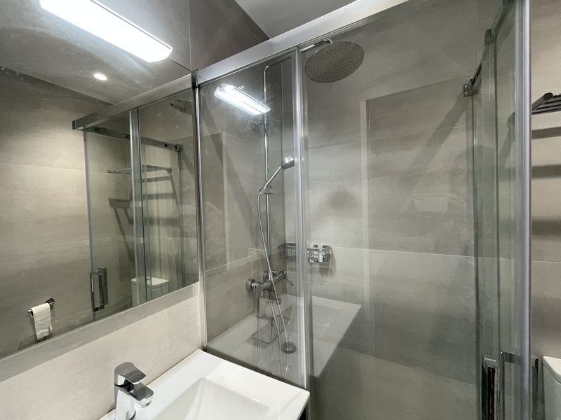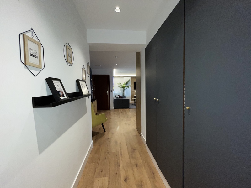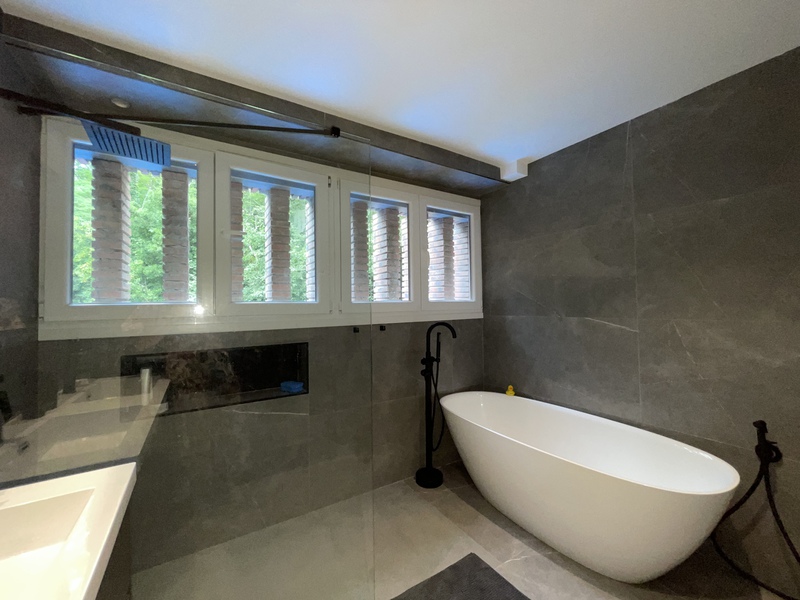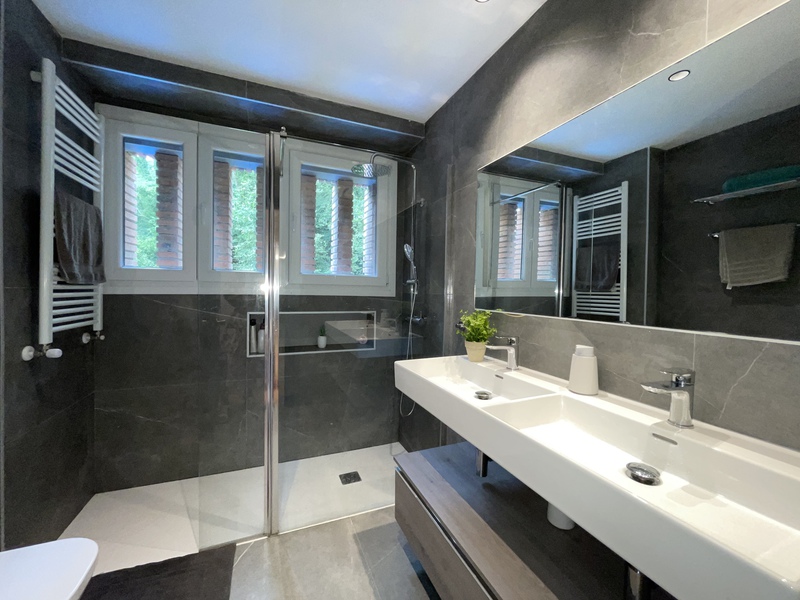 Continuando avanzamos a la zona de noche, donde nos encontramos con tres dormitorios dobles y exteriores, siendo uno de ellos con baño en suite, el cual esta equipado. con ducha extragrande y bañera de diseño, grandes ventanas en el baño, doble lavabo. Dispone de un segundo baño también con ducha y doble lavabo para dar servicio a las otras dos habitaciones, todas con armarios empotrados.